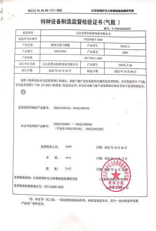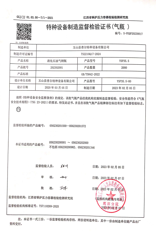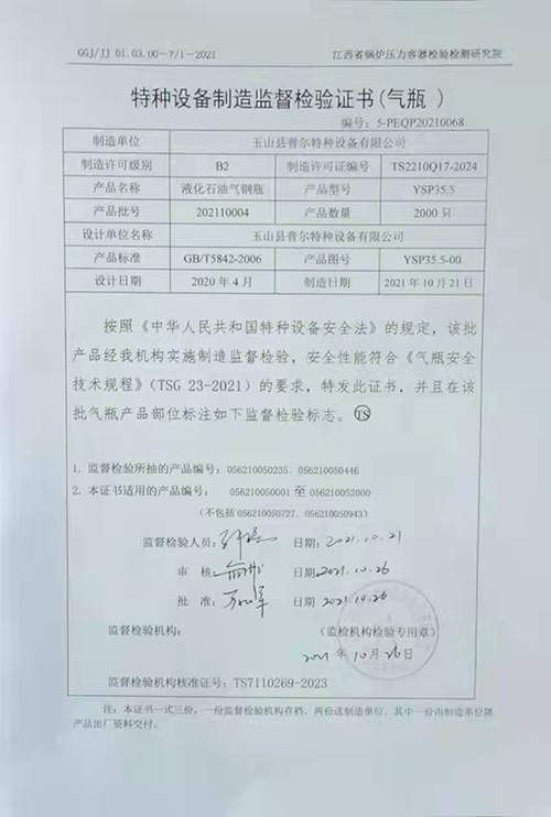 玉山县普尔特种设备有限公司位于江西省玉山县高新技术产业园区,公司占地面积31400平方米,建筑面积13200平方米。目前已经购置80余台生产设备及检验、检测设备和成套计量器具,生产设备自动化程度高。目前配置封闭式自动液化石油气钢瓶生产线1条,为保障公司产品质量,为年产能力100万只创造了必备的条件。公司管理层对液化石油气钢瓶制造具有丰富的管理经验,现有员工50余人,各类专业技术人员10余名,拥有气保焊焊工及无损检测人员,有液化石油气钢瓶制造相配套的试验和检验设备,有完整的质量管理体系,完全能满足液化石油气钢瓶制造的需求,为用户生产优质、安全、使用性能可靠的液化石油气钢瓶。公司紧邻320国道、G60高速公路和高铁玉山南站,交通便利,区位优越。自公司成立起,就确立了“质量为上”是公司永恒的宗旨,将严格控制产品质量,产品至上,客户至上,服务至上,满意至上...